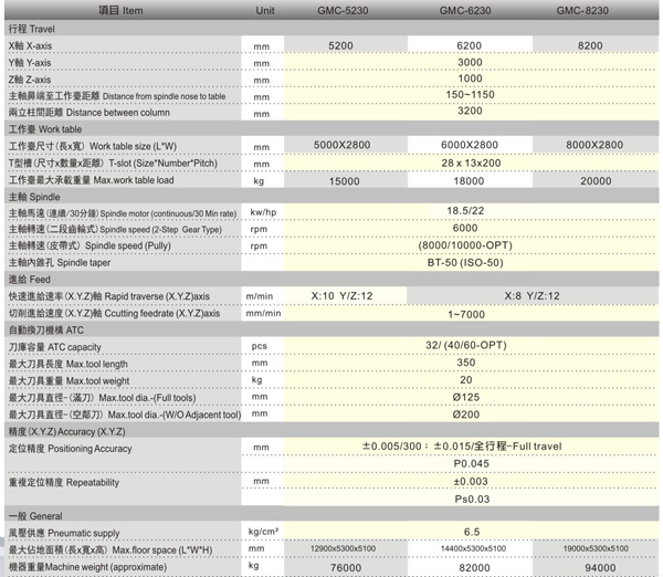 產(chǎn)品型號(hào):GMC-5230 龍門加工中心 產(chǎn)品類別:龍門加工中心