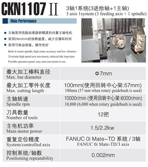 產(chǎn)品型號:CKN1107II 產(chǎn)品類別:走心機