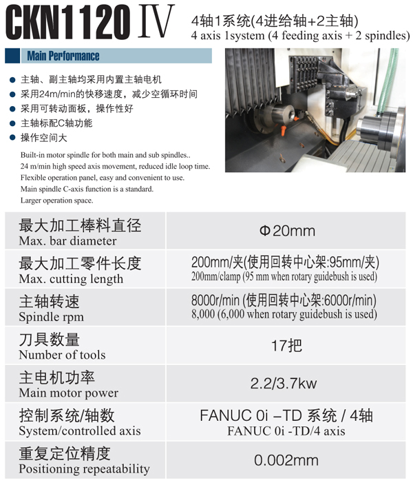 產(chǎn)品型號(hào):CKN1120IV 產(chǎn)品類別:走心機(jī)