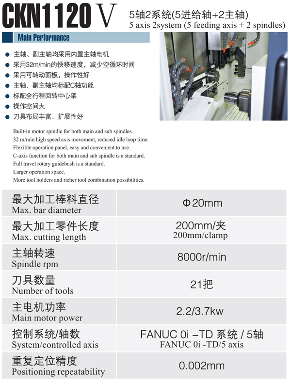 產(chǎn)品型號:CKN1120V 產(chǎn)品類別:走心機